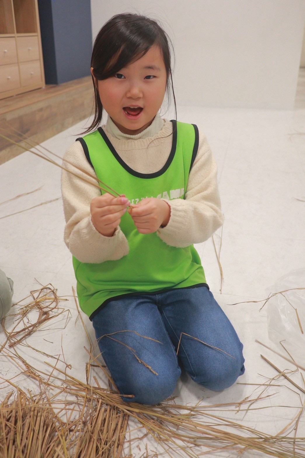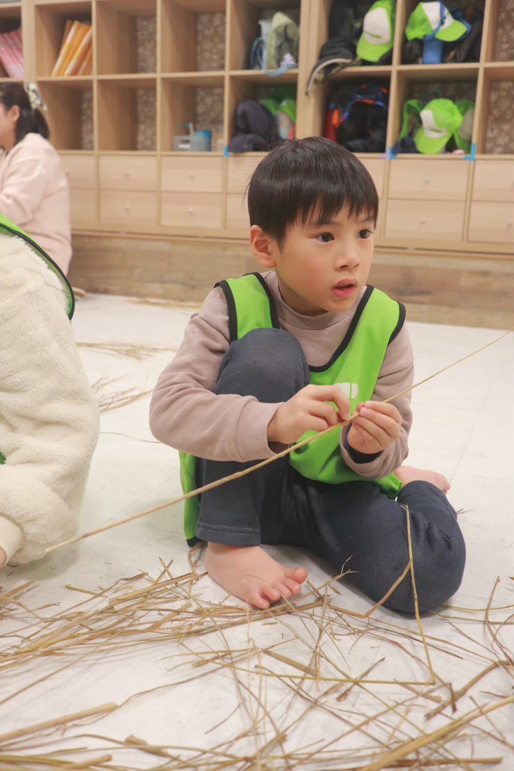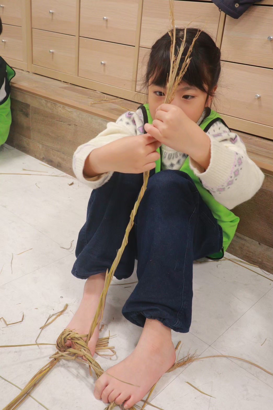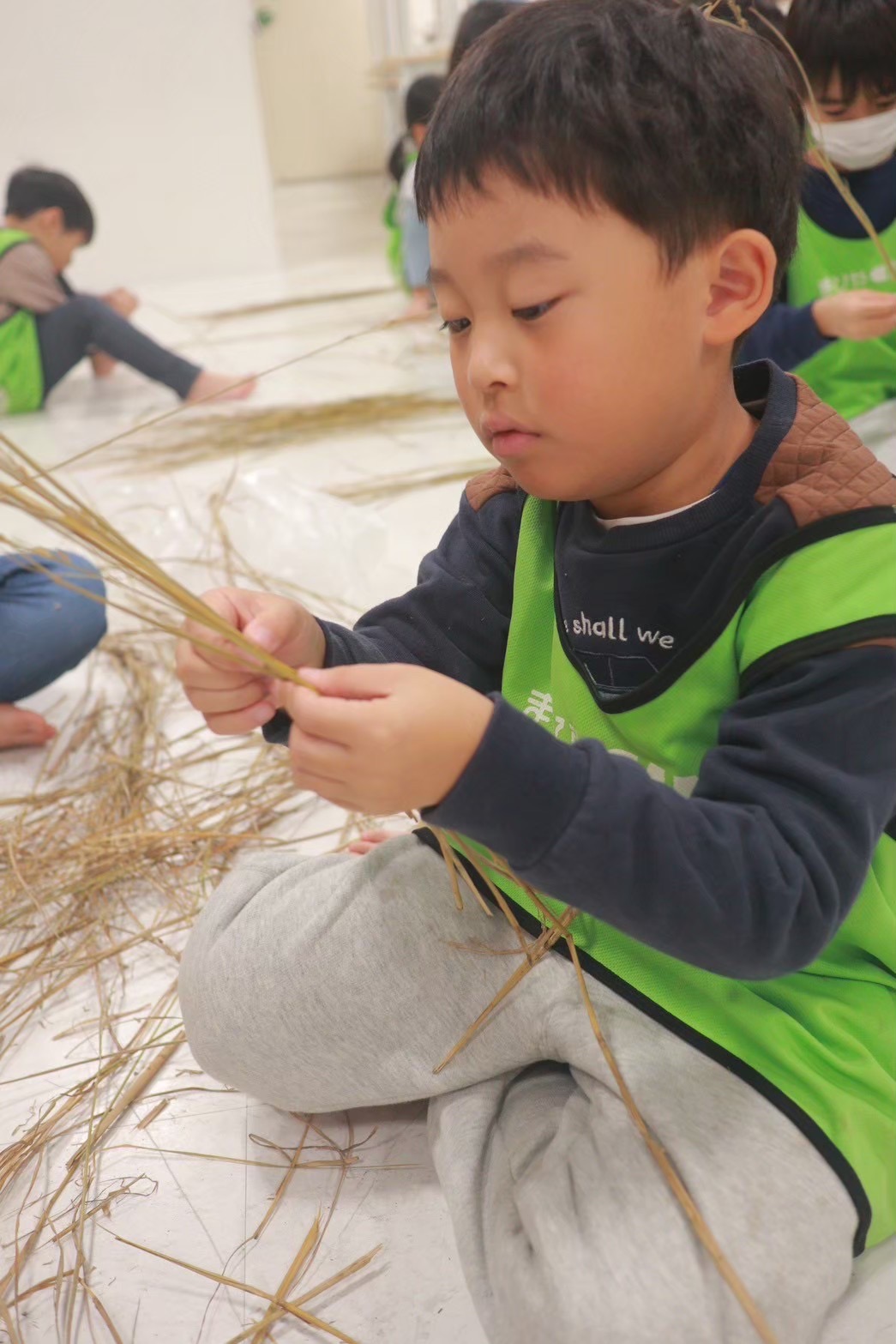 捻じったり編んだりする向きが決まっているので混乱しますが、お友だちと協力したり、小さな手や足を駆使して、一生懸命編んでいました👀✨