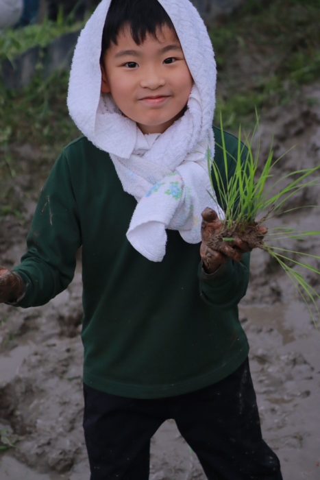 はじめは苗をもぎ取る作業や「足がはまった😅」と、泥の中での作業に苦戦する様子も見られましたが