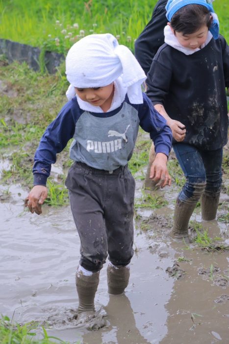 空いている田んぼの中で遊ばせてもらい、泥の中をかけまわったり、