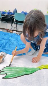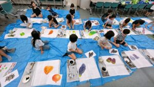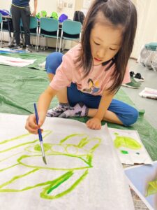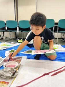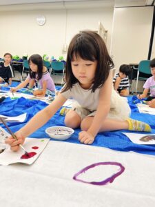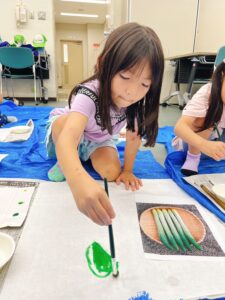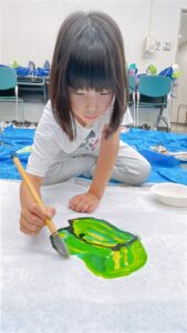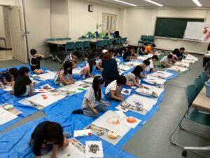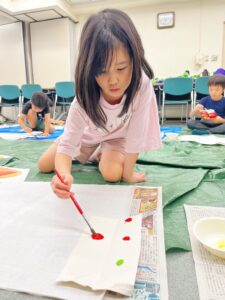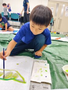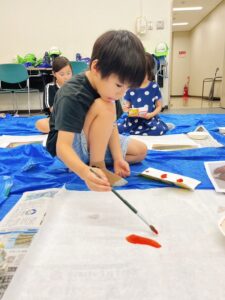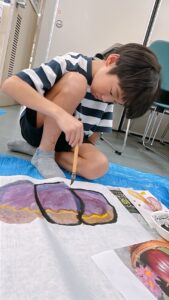 ふんわりとした色合いにするため水の量を調整するのに少し苦戦しましたが、みんな思い思いの色を筆でのせました🖌