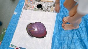 そして、24種類の中からお気に入りの野菜を見つけ、大きな紙に墨と絵の具を使って絵を描いてみました🎨✨