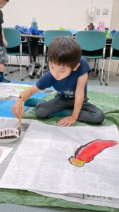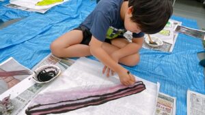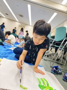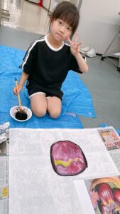 「緊張する~!」と慎重に筆を進める子もいれば、豪快に描き進める子も…!😂
