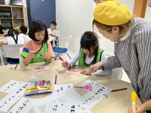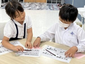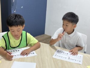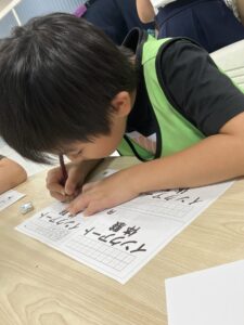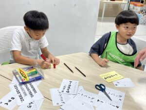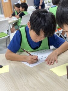 商品のイメージに合ったフォントを選び、丁寧に書き上げる子どもたち🤗